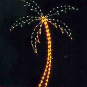 This 10-foot Ground Mounted Silhouette Palm Tree decoration is made with a heavy-duty steel rod construction, along with a corrosion-resistant powder coating. Commercial grade wiring is then applied, which is secured by our heavy-duty clips and nylon ties.