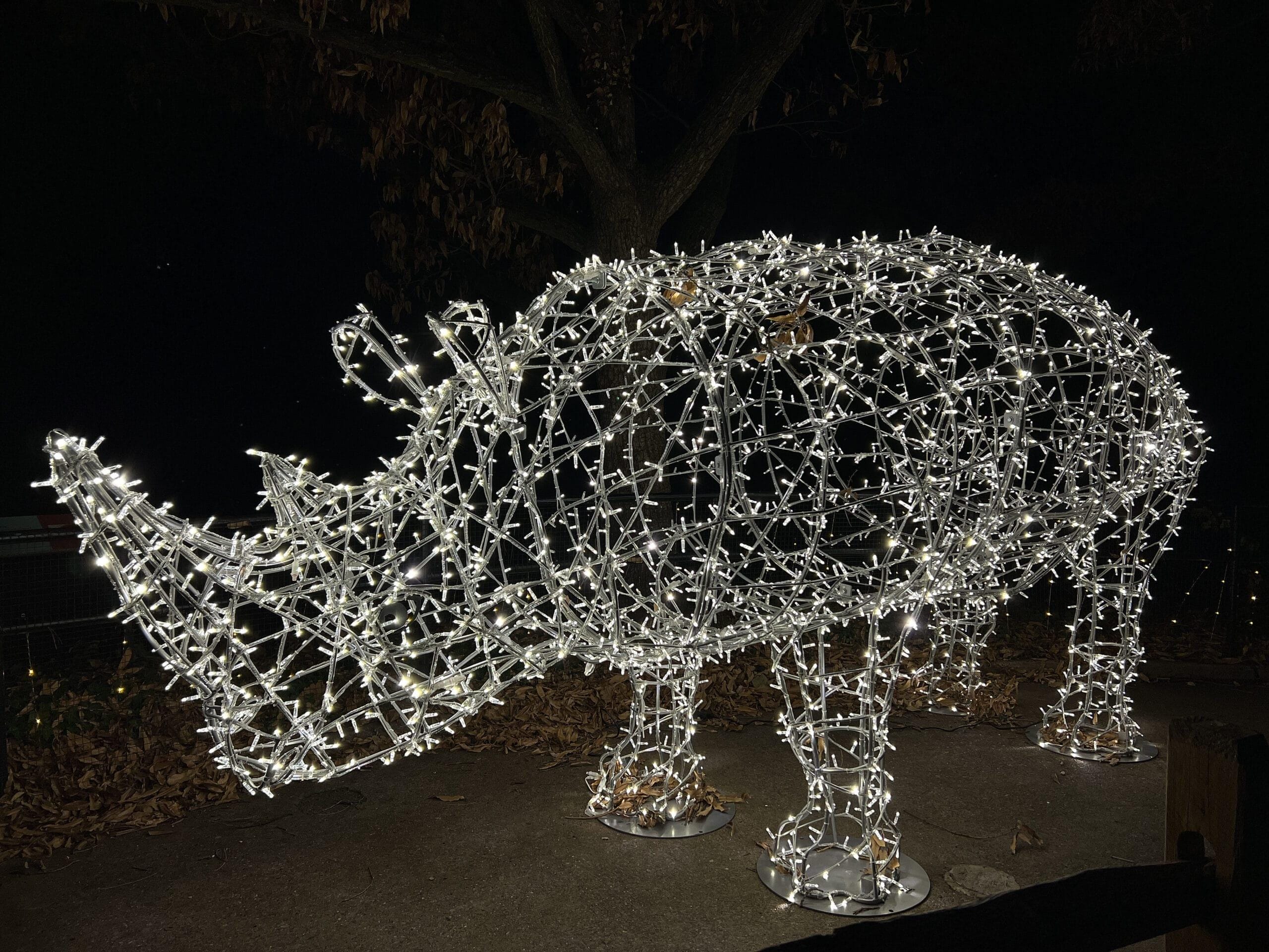Transform your zoo or lighting park into a magical realm with the 3D Rhinoceros Light Display. Order yours today and bring the wonder of the animal kingdom to life!