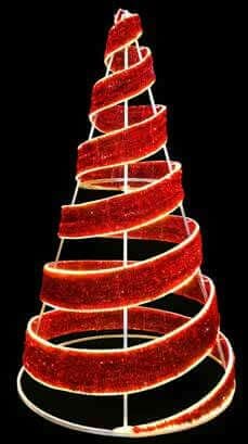 This 6′ Spindle Tree Holiday Light Display is covered in garland with rope light outline. Available in any combination of garland and rope light colors. 6′, 12′ And 18′ sizes available. Available with ornamentation.