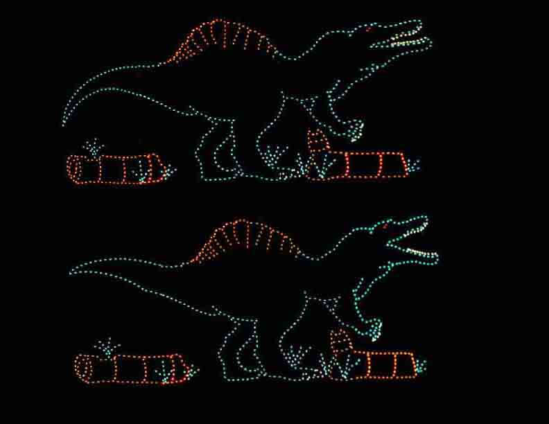 This 17′ Animated Spinosaurus Holiday Light Display is a beautiful ground-mounted display that will fill your holiday light show with delight and wonder! Perfect for zoos and drive-thru parks!