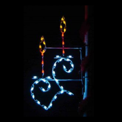This 4′ Double Candle Pole Mount Holiday Light Display is a stunning pole mounted display that make your holiday streets sparkle! We use the latest LED technology, Minleon® C7 SMD LED lights, and build a sturdy foundation for our light displays with heavy-duty steel rods and a corrosion-resistant powder coating to protect against wear and tear. It’s important for us to use only the best materials, like commercial-grade wiring, which we secure with heavy-duty clips and nylon ties for a seamless and reliable installation