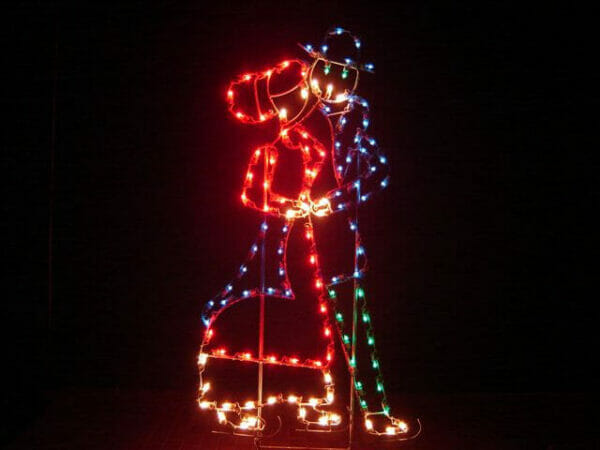 This 6 foot Ground Mounted Silhouette Skating Couple Christmas decoration is made with a heavy-duty steel rod construction, along with a corrosion-resistant powder coating. Commercial grade wiring is then applied, which is secured by our heavy-duty clips and nylon ties.