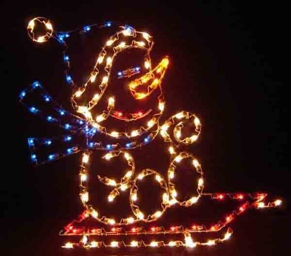 This 5-foot Ground Mounted Silhouette Snow Kid on Sled Christmas decoration is made with a heavy-duty steel rod construction, along with a corrosion-resistant powder coating. Commercial grade wiring is then applied, which is secured by our heavy-duty clips and nylon ties.