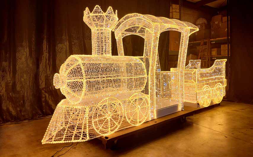 This Train Car Photo Op With Mesh Holiday Light Display has 4,200 5mm mini lights and 624Ft of rope light. Can be customized to any