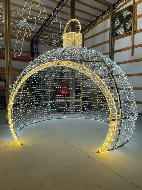 This walk-in ornament makes a great photo op to compliment your holiday display. They are made with a heavy-duty fiberglass construction, along with a corrosion-resistant powder coating.