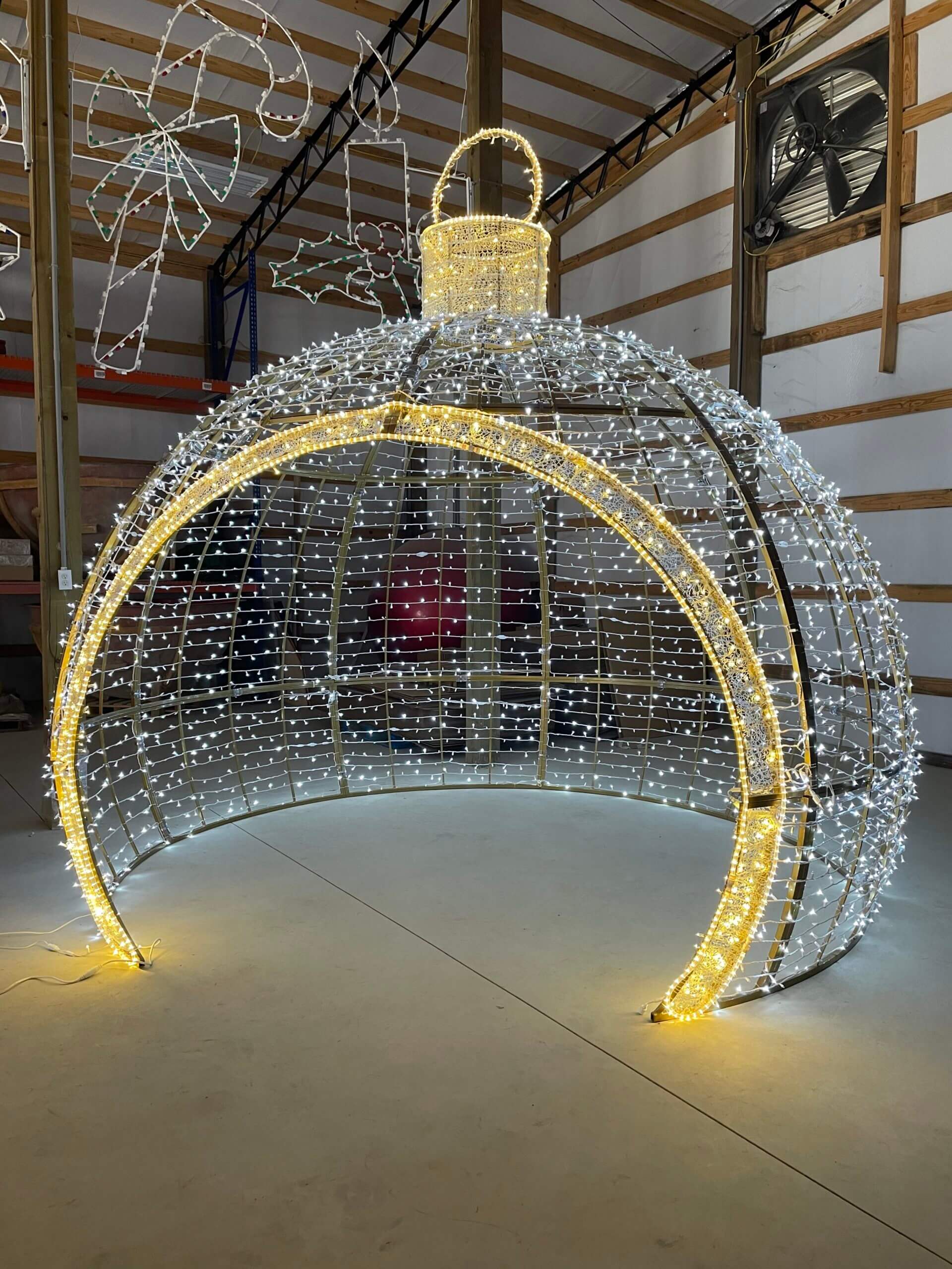This walk-in ornament makes a great photo op to compliment your holiday display. They are made with a heavy-duty fiberglass construction, along with a corrosion-resistant powder coating.