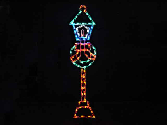 This 7-1/2 foot Ground Mounted Silhouette Yuletide Lamppost Christmas decoration is made with a heavy-duty steel rod construction, along with a corrosion-resistant powder coating. Commercial grade wiring is then applied, which is secured by our heavy-duty clips and nylon ties.